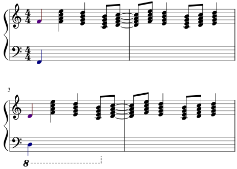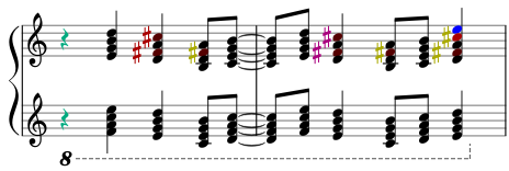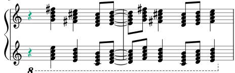 will create compound chords/harmonies. (These should be vocal parts/lines/phrases,