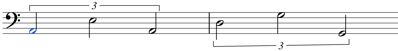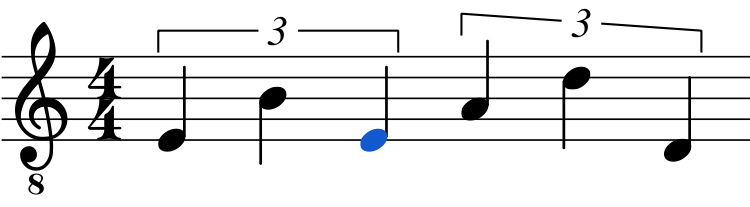 Slight rhythmic variation -- evenly-spaced(-apart) triplets: