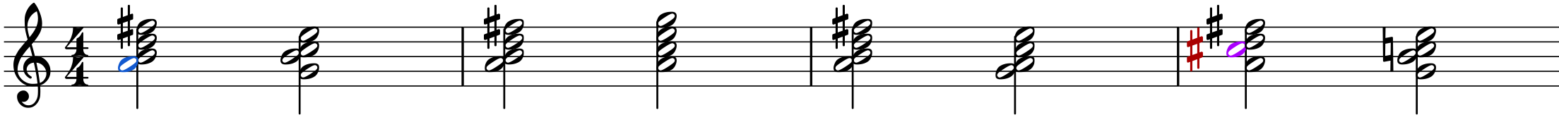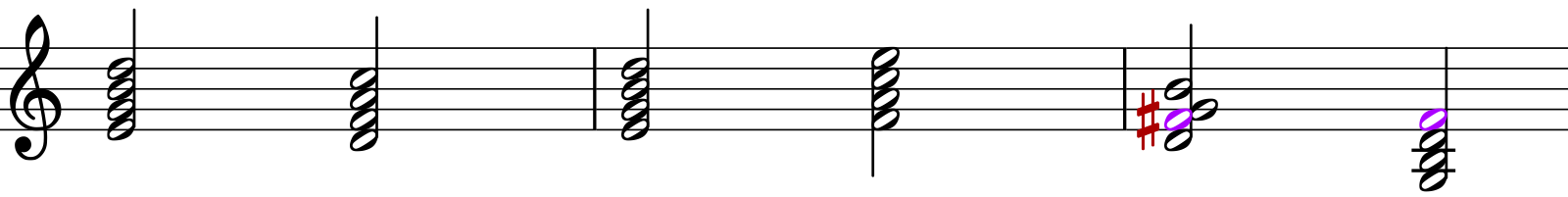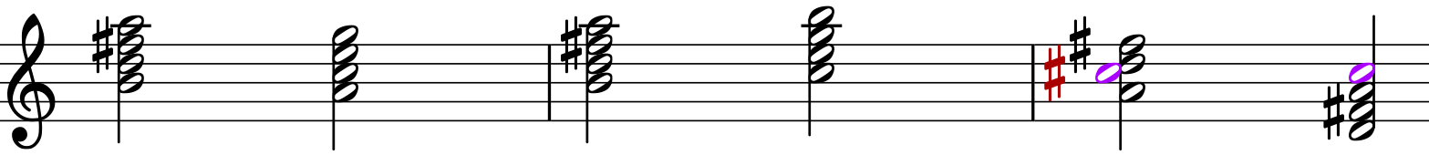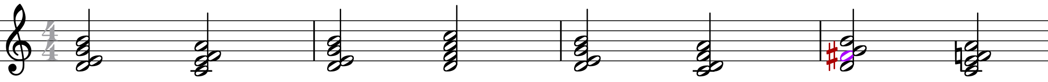 Notice how the following two voicings are inversions of th same chord: 'G' Major 7
